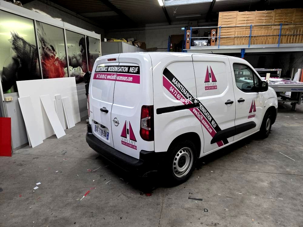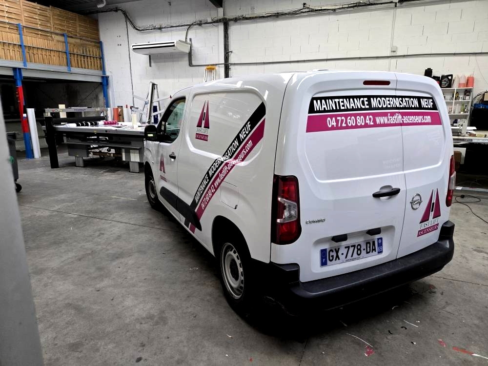 Réalisation et pose d'un marquage adhésif sur véhicule professionnel