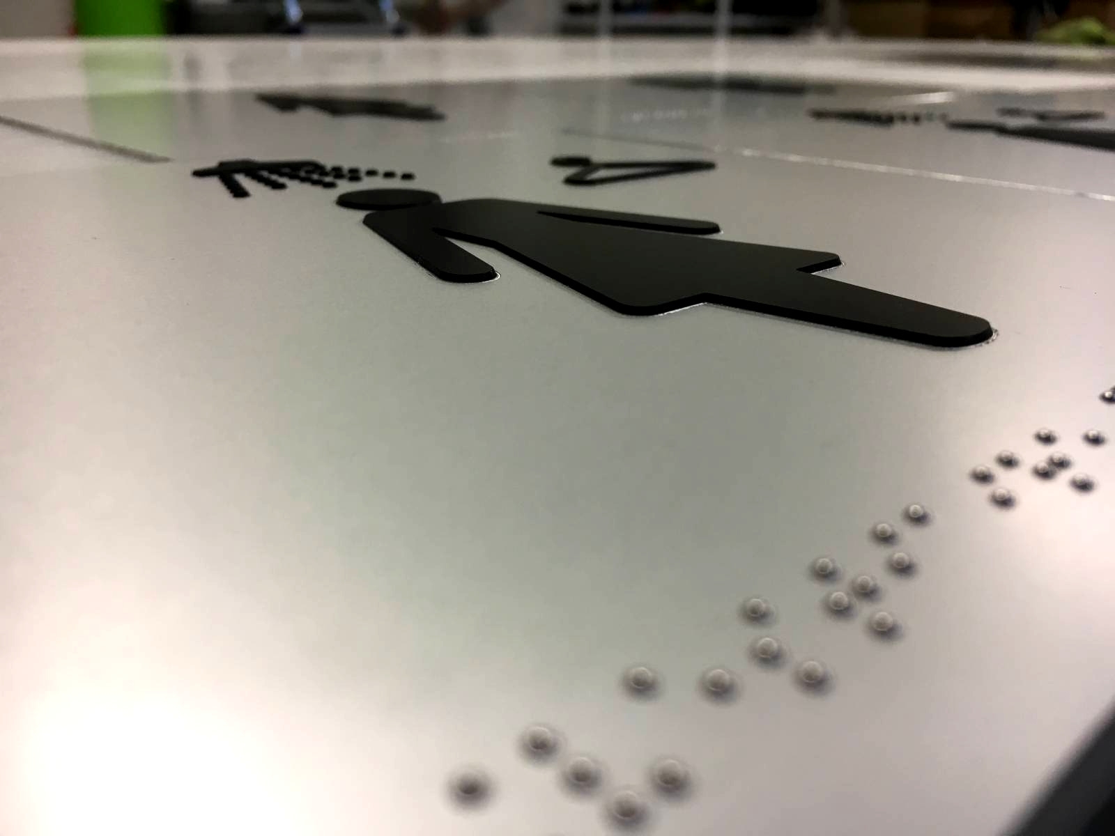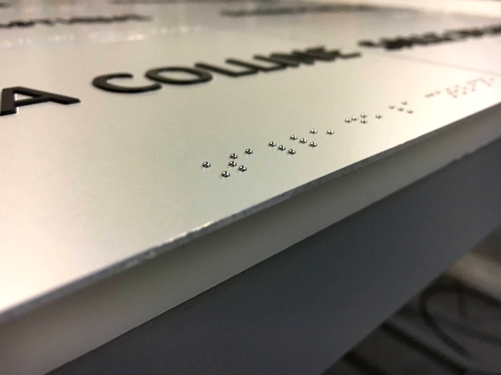 Pour rendre vos locaux accessibles aux personnes déficientes visuelles vous pouvez passer par une signalétique tactile braille et / ou relief posé à hauteur de main.